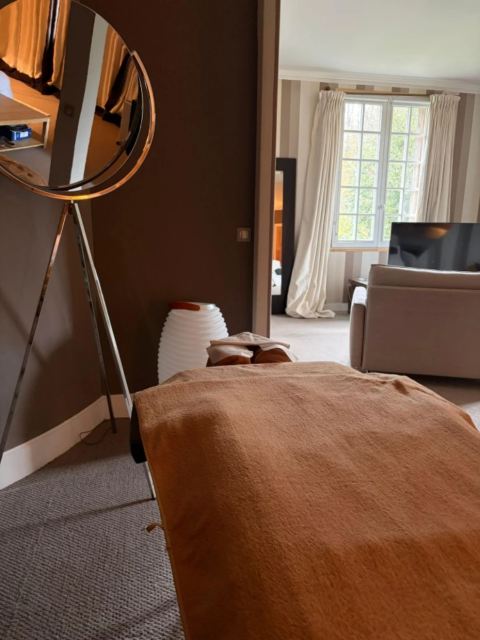 Je vous accompagne où vous êtes le plus confortable : à domicile, dans mes cabines situées à Deauville et Honfleur, ou même lors de retraites bien-être et séminaires, pour lesquels j’interviens déjà afin de proposer des expériences de détente sur mesure.